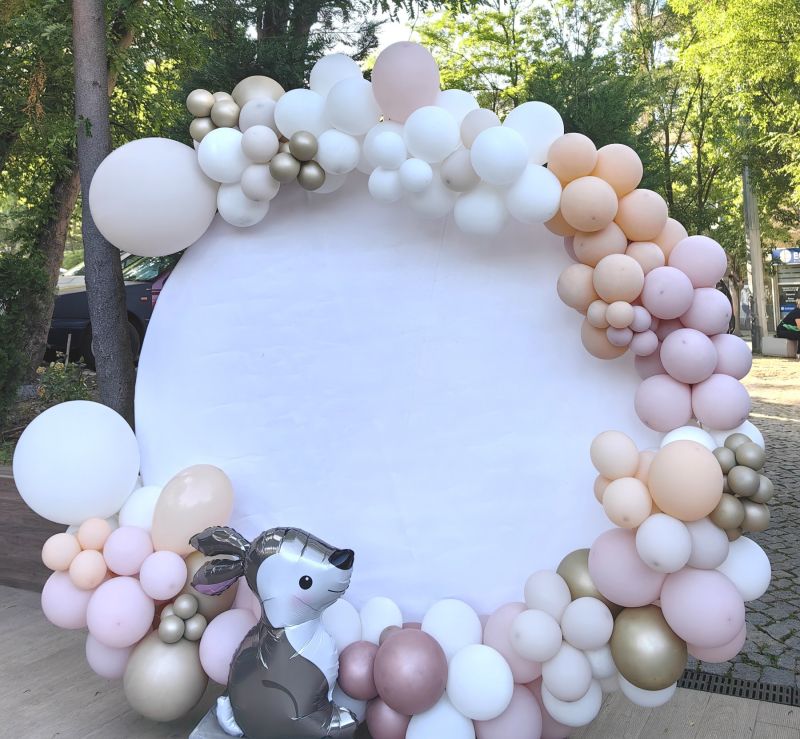 Украса за кръщение, погача или рожден ден с кръгла арка с дизайн по избор. Украсата можде да бъде изработена в цветове по желание на клиента.