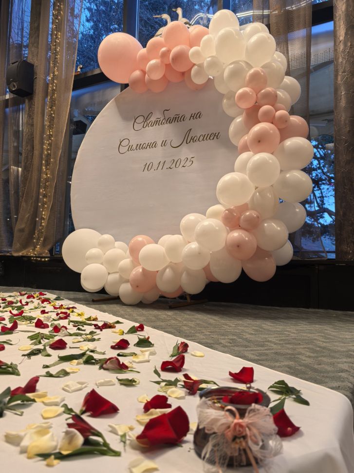 Украса с арка с балони за сватба, абитурентски бал, юбилей, рожден ден или кръщение