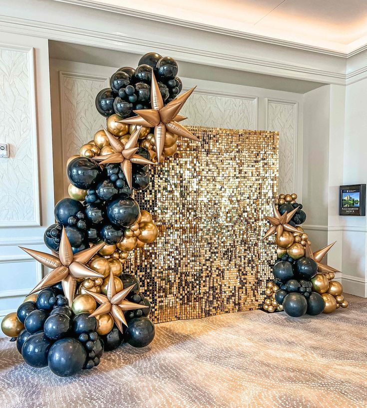 Украса с пайетена стена в златно с балони
