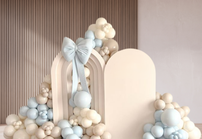 Украса за кръщение, погача или рожден ден с кръгла арка с дизайн по избор.