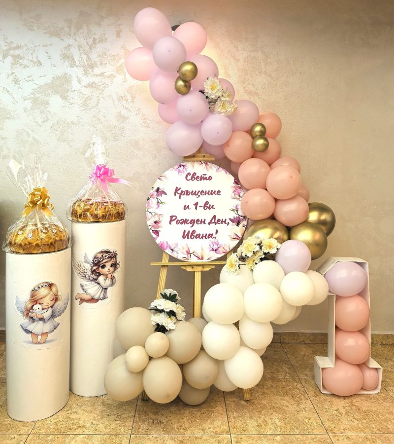 Украса за кръщение и първи рожден ден с цветя и ангелчета